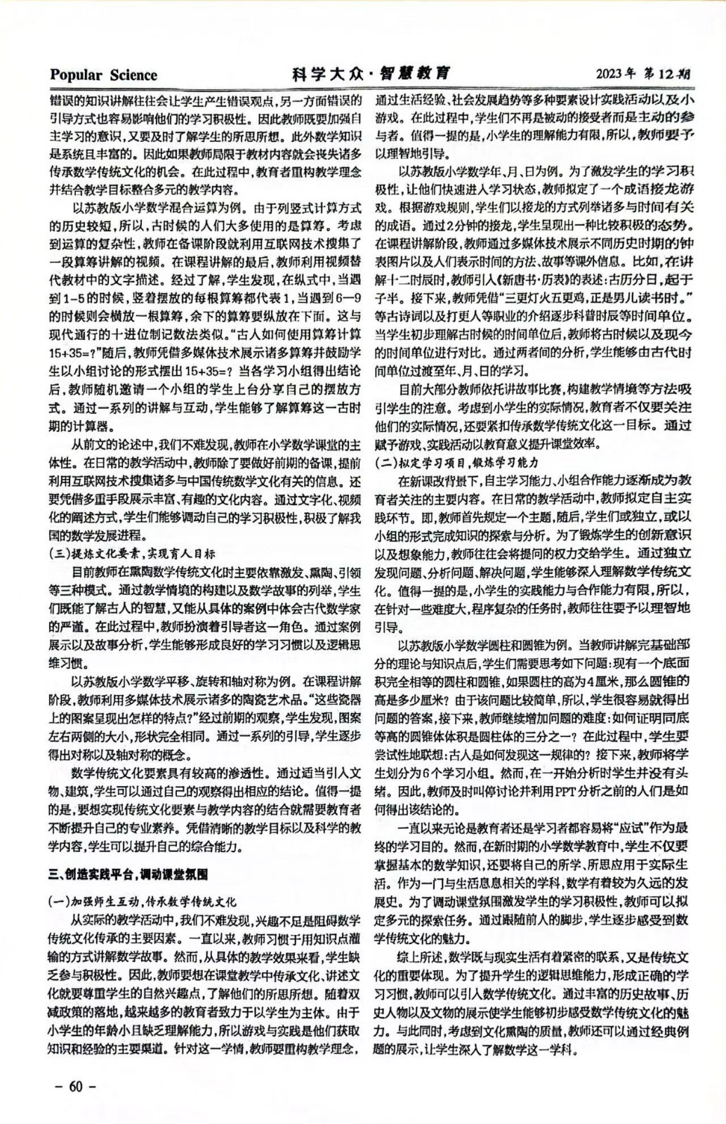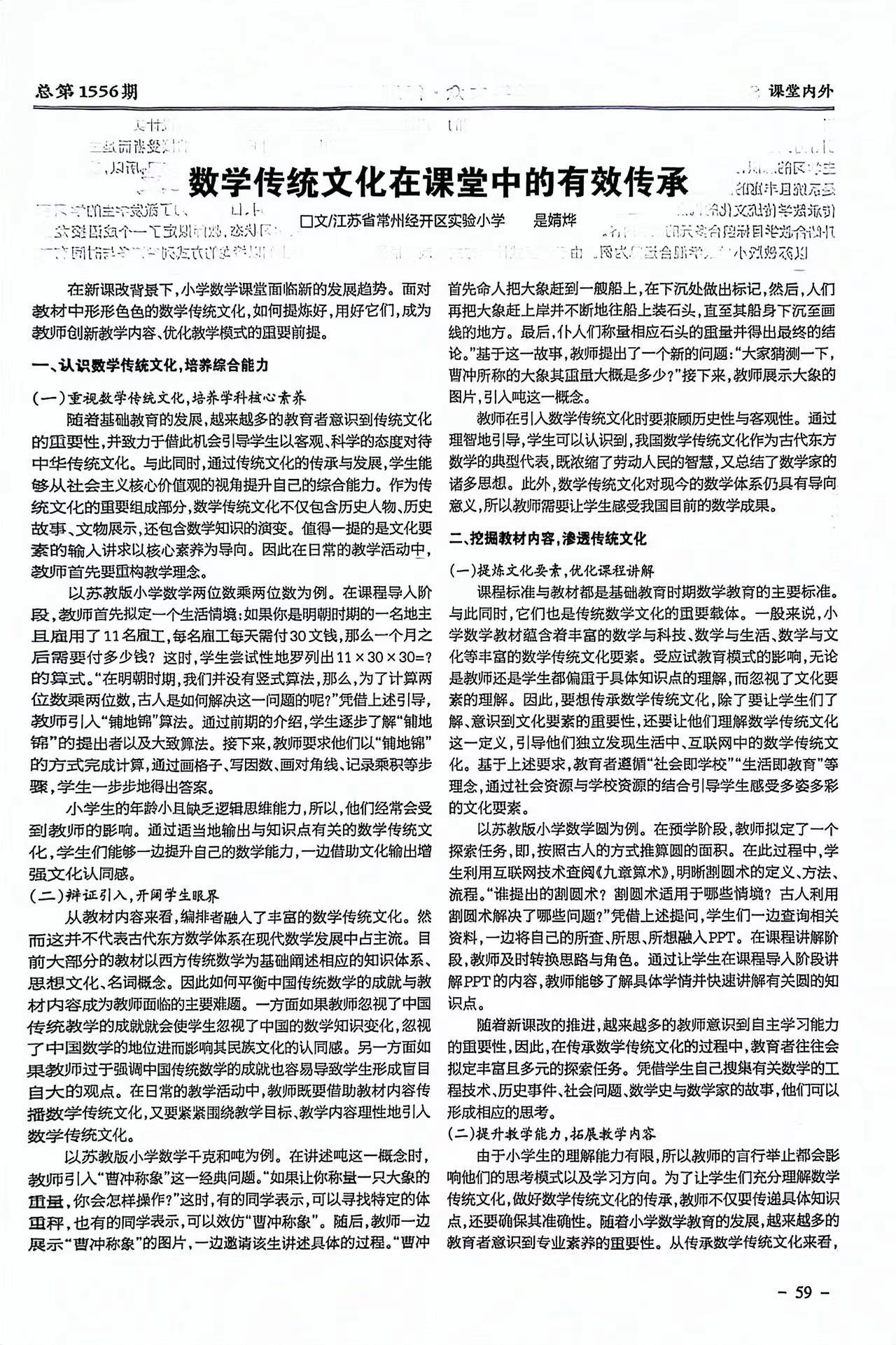 《数学传统文化在课堂中的有效传承》论文发表
